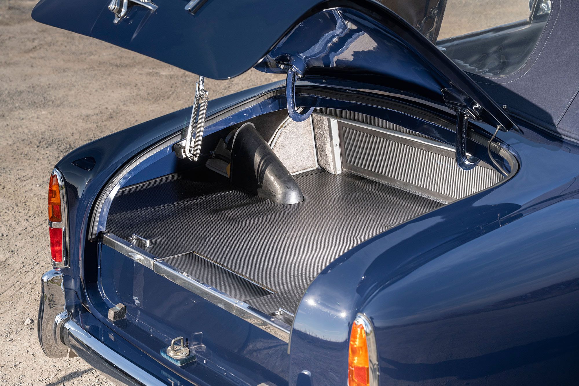 Many years later, in 1988, the car found its way back to the UK, arriving in highly original but rather tired condition. Its new owner, a Mr Benson, then commissioned a extensive restoration with us which was undertaken between 1989 and 1996. This was no small undertaking - around the 3000 hour mark - imagine the cost today! It was decided that the original body was in such poor condition that a replacement would be required. Accordingly, an original Tickford body was sourced from Aston Service Dorset and then converted to the desirable drophead coupe configuration. At the same time the car was converted from left to right-hand drive, and the colour scheme changed to dark blue with grey interior.